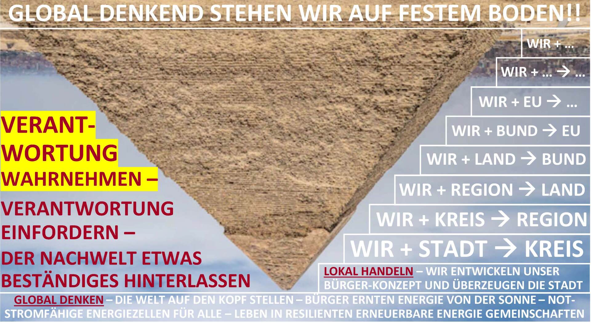 Und das meint REDinD: Diese Energiewende muss in den demokratischen Gesellschaften auch zu notstromfähigen Bürgerstrukturen führen, um resiliente Bürgergesellschaften aufzubauen. Das InnovativeD muss das BeharrendeD im Innern überholen.