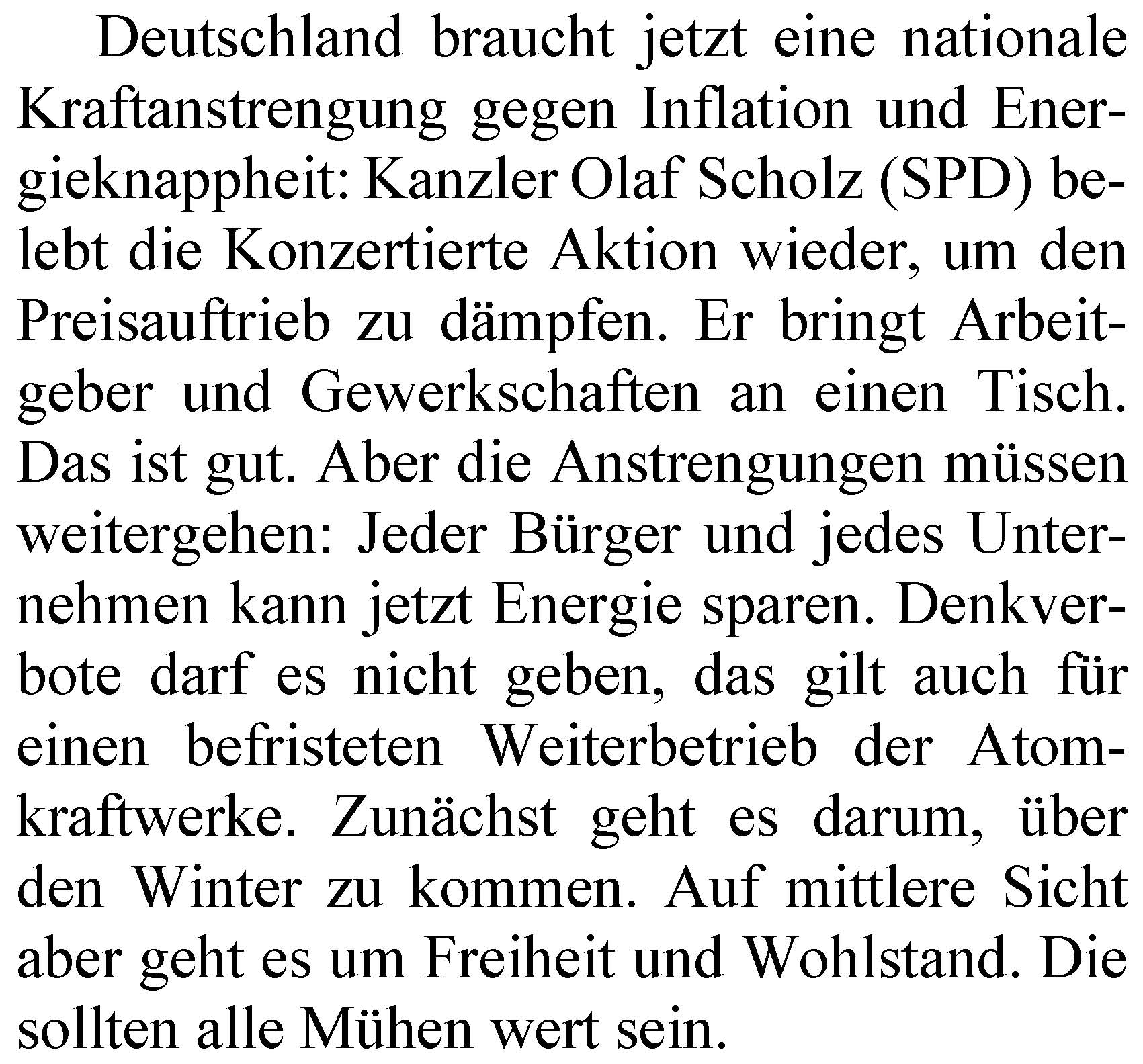 Das Interview mit Christoph Heusgen, dem Chef der Münchner Sicherheitskonferenz, schließt mit dessen Aussage: „Er (Putin) hält die Gesellschaften in Europa und Nordamerika letztlich für dekadent und schwach. Er denkt, dass wir diesen Druck nicht aushalten. Ich glaube, er täuscht sich. Unsere Gesellschaften sind widerstandsfähiger , als der russische Präsident sich das vorstellt.“