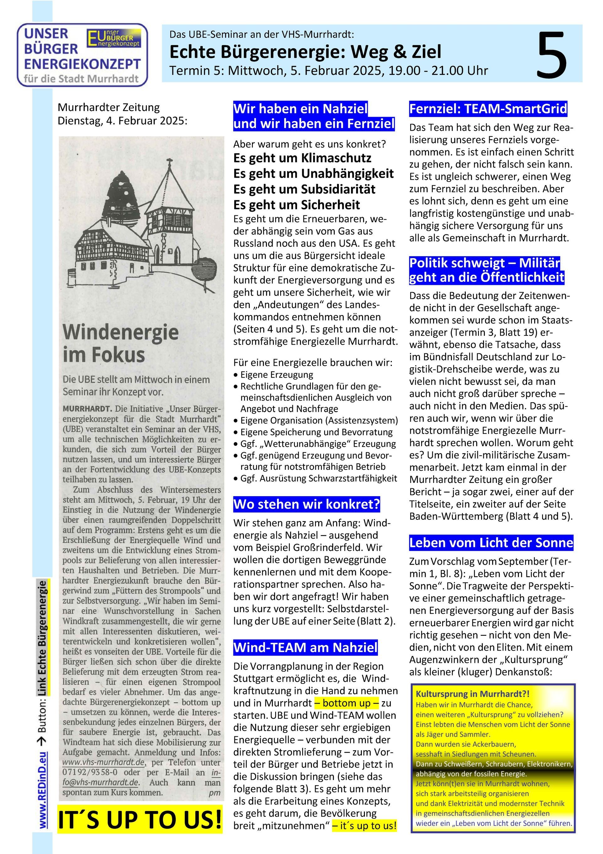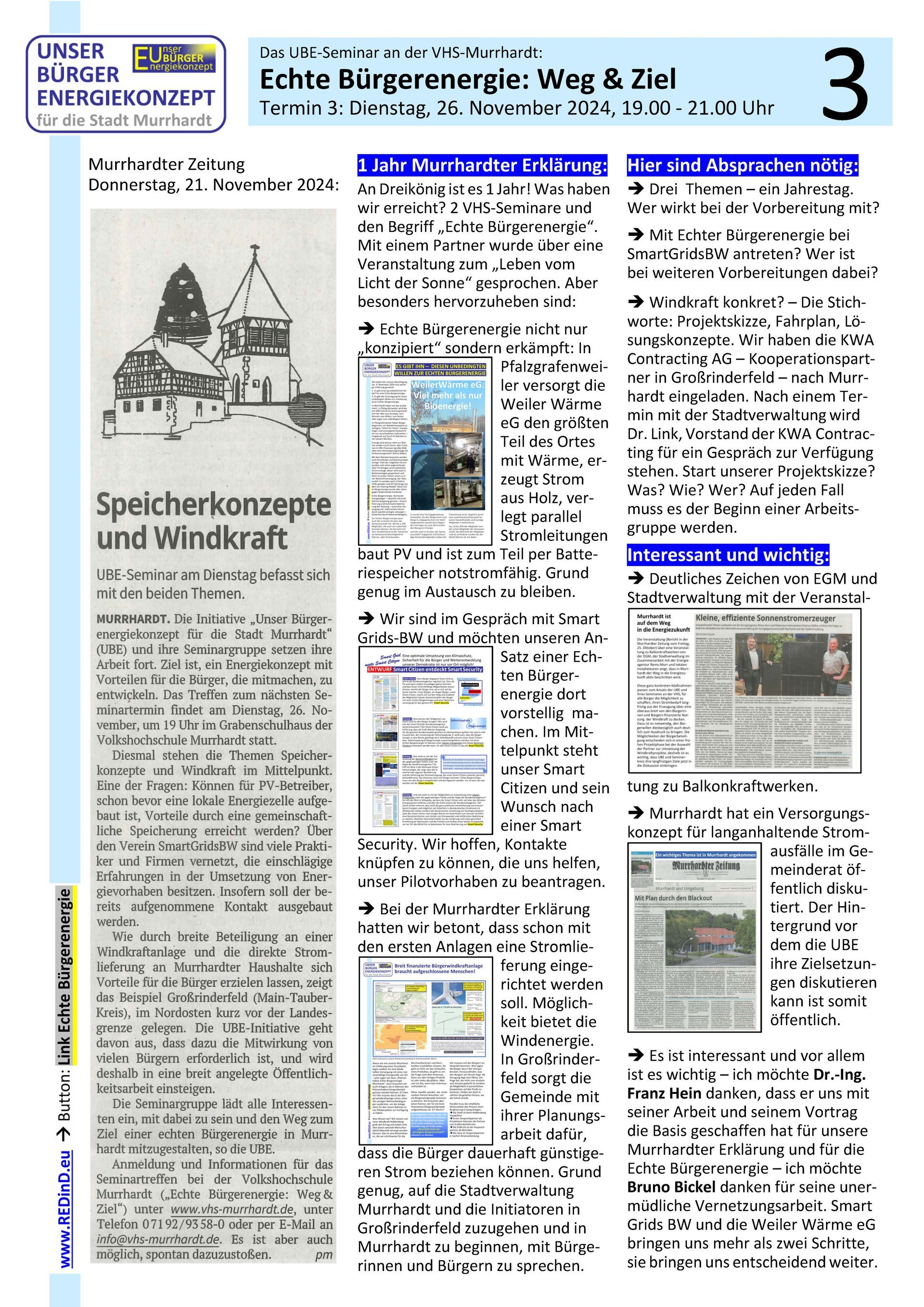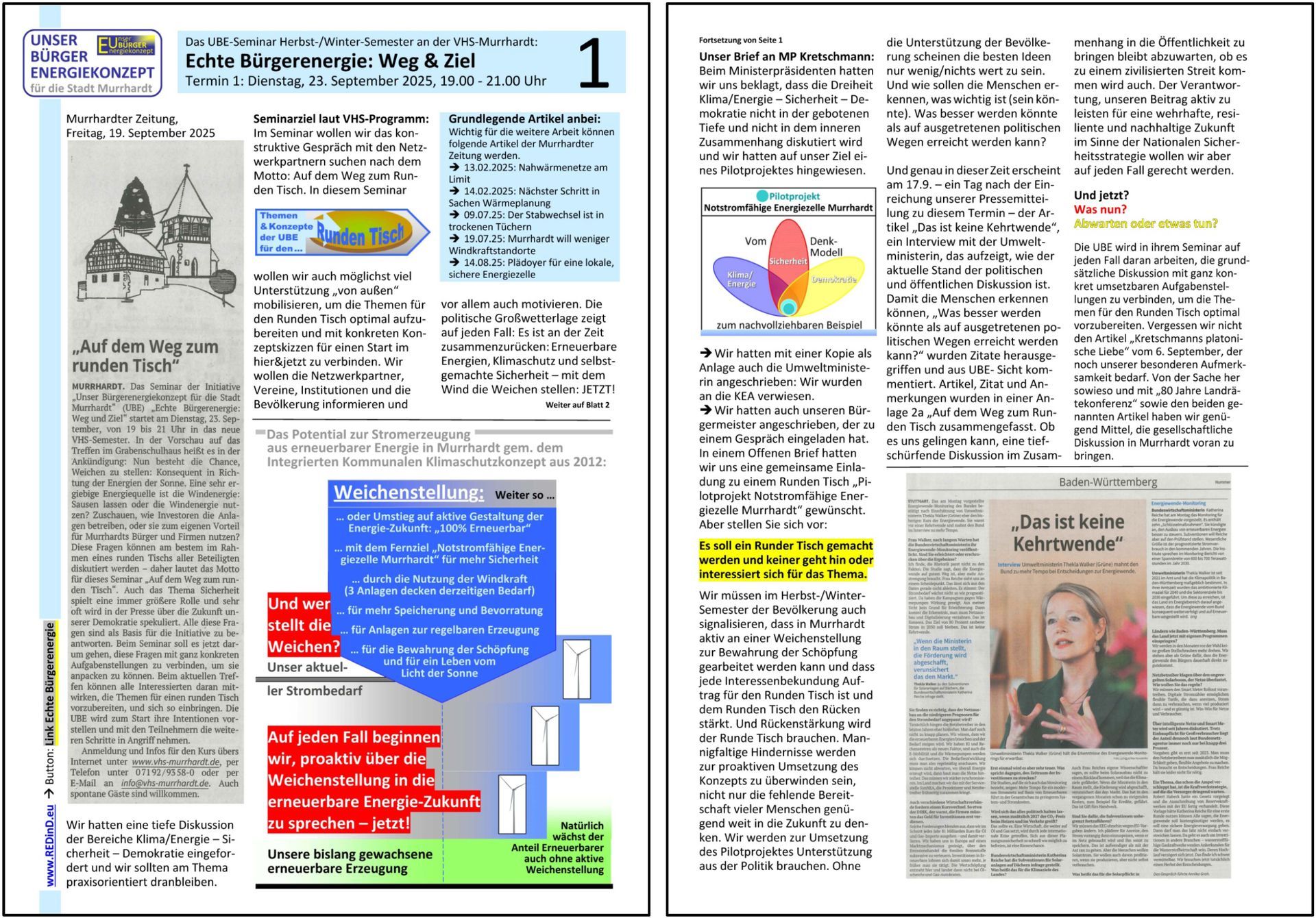 UnserBürgerEnergiekonzept in Murrhardt, Broschüre 4 vom 5.09.2022 im Bild: