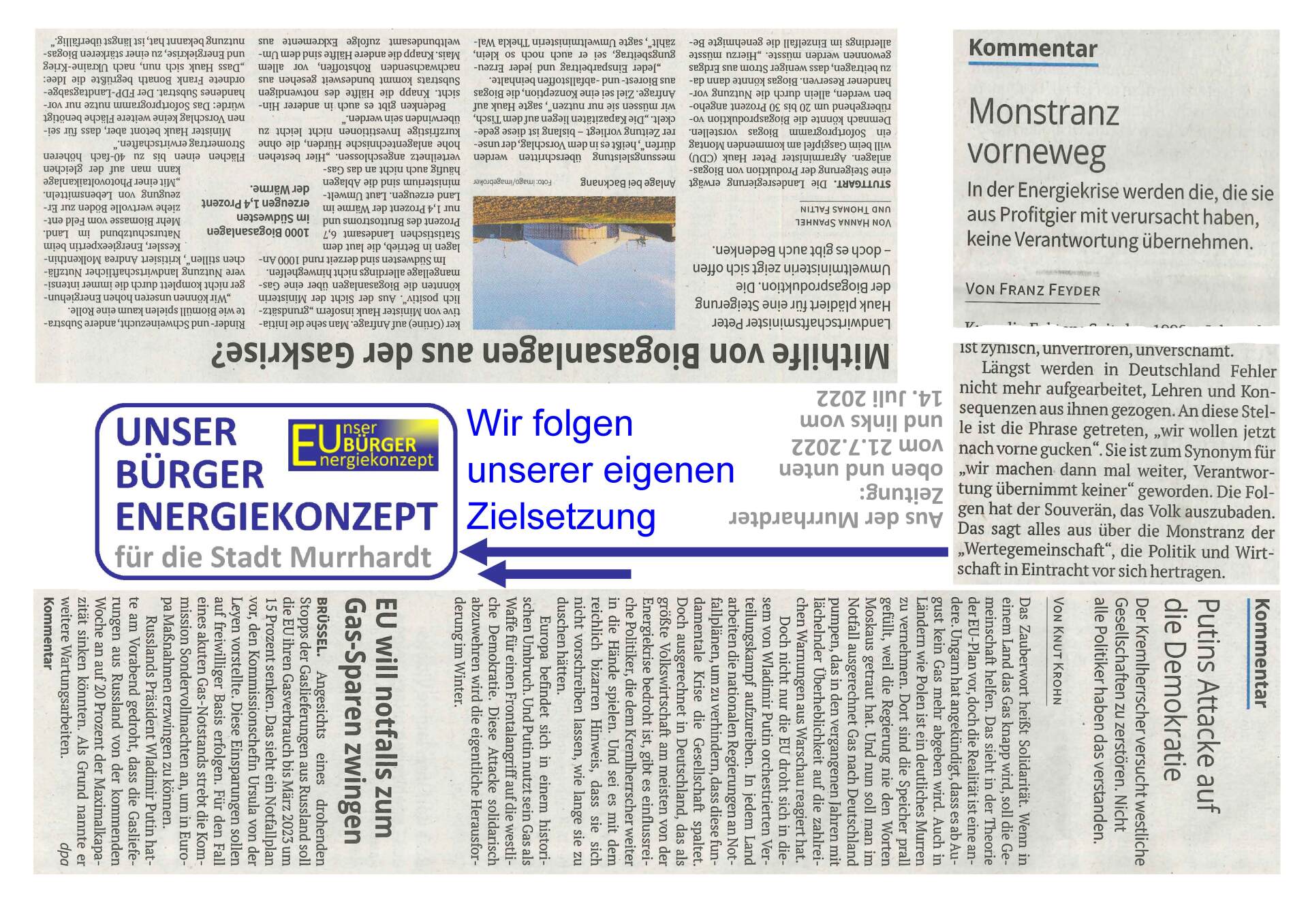 Die angeführten Artikel und Kommentare erreichen Sie lesbar über unsere nachfolgende Artikelsammlung. Es handelt sich um die beiden Artikel vom 21.7.2022 und den Artikel/Kommentar vom 14.7.2022.