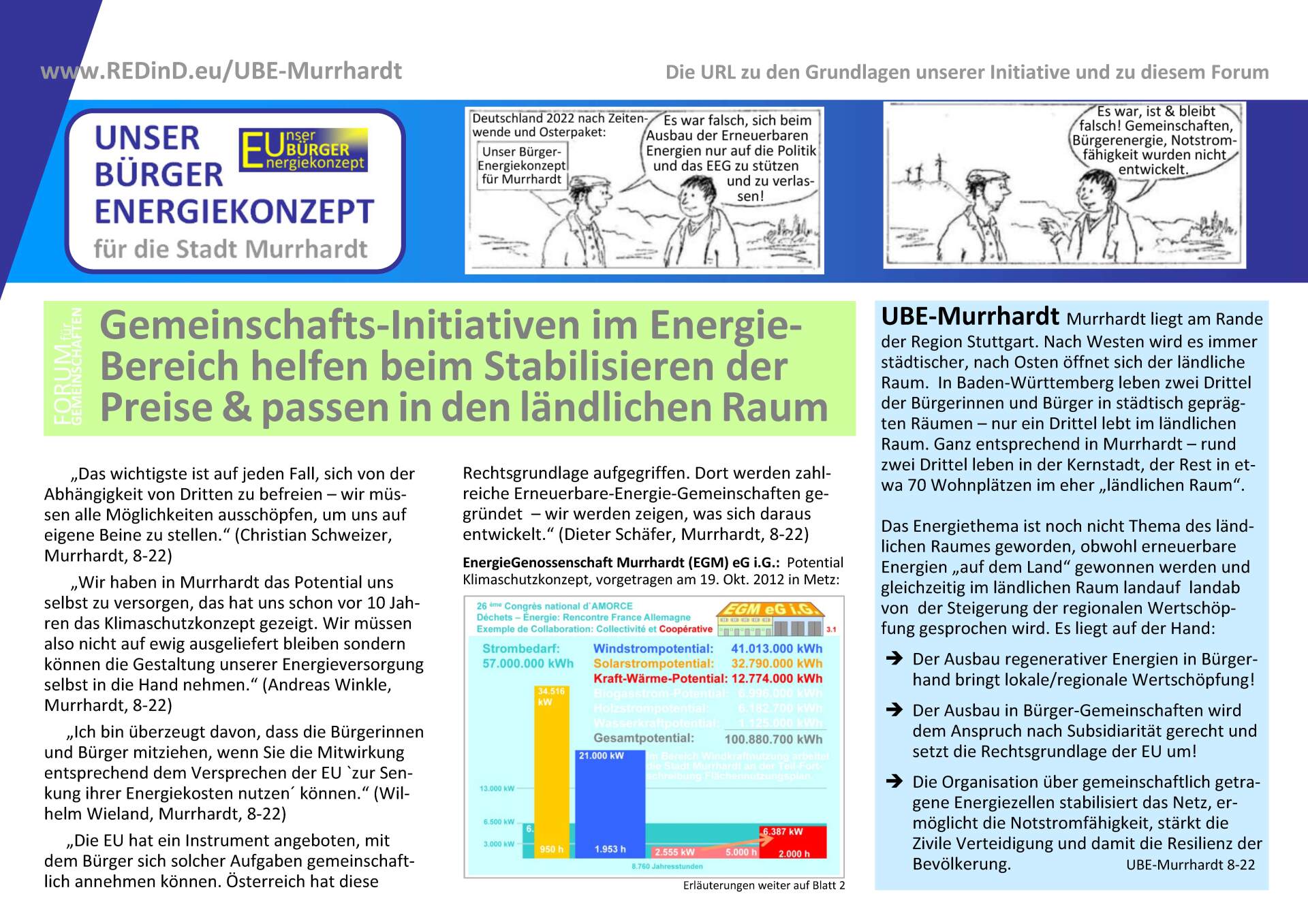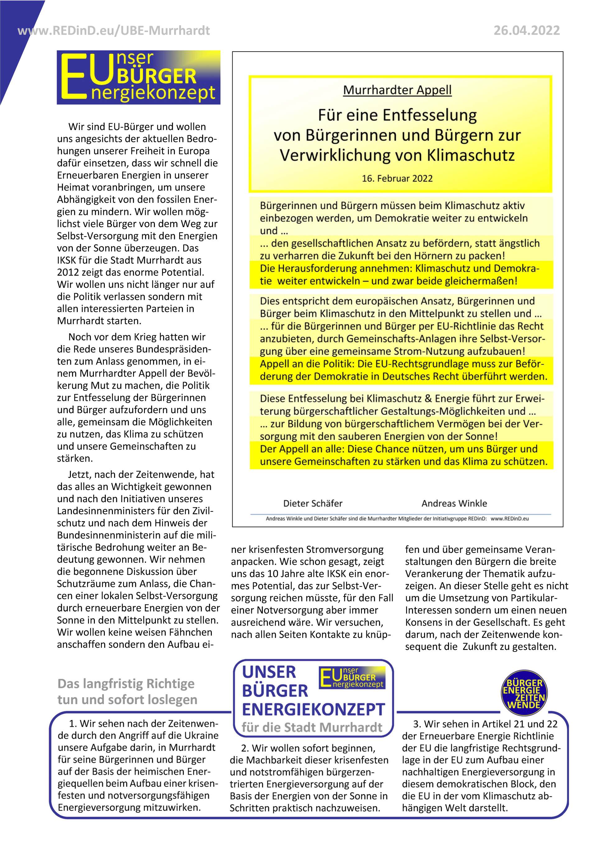 UnserBürgerEnergiekonzept in Murrhardt, Broschüre 1 vom 26.04.2022 im Bild: