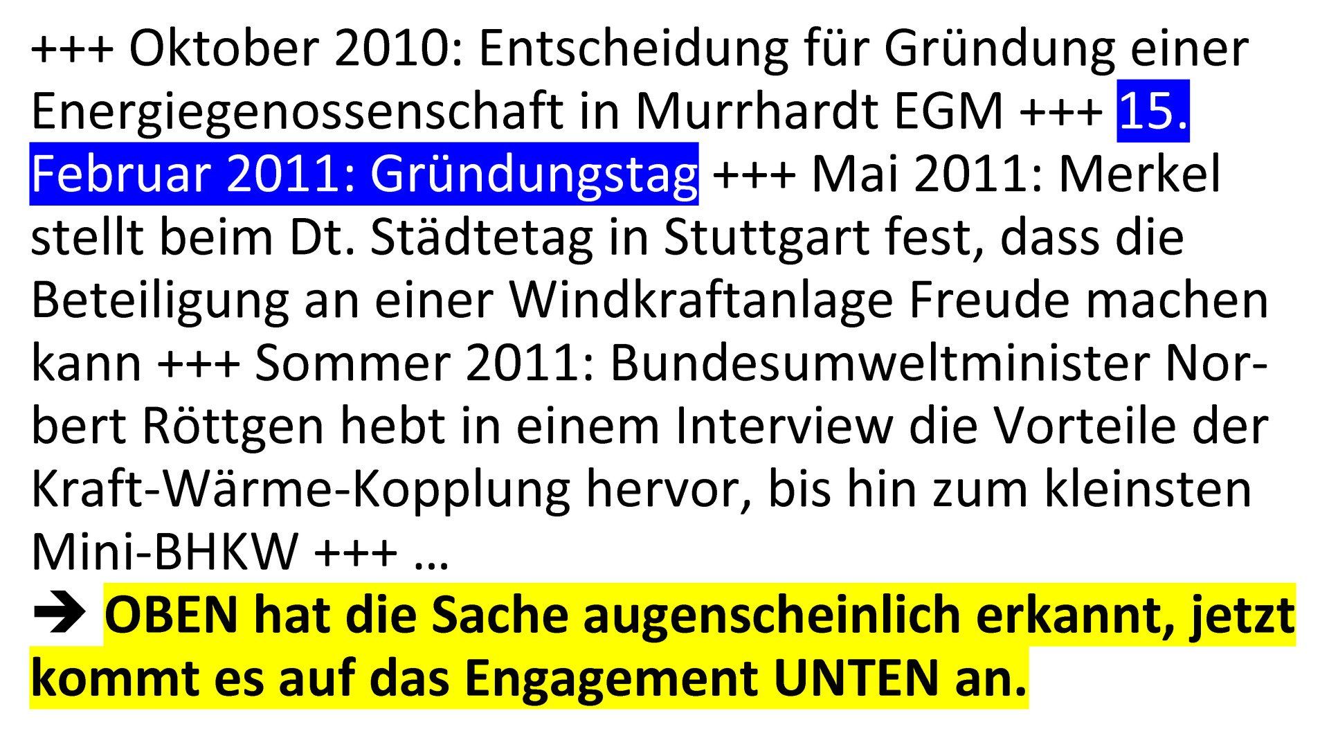 Ich war der festen Überzeugung, dass OBEN erkannt hat, was die Stunde geschlagen hat und ging davon aus, dass nicht nur aus der Atomkraft aus- sondern auch in die Energien von der Sonne eingestiegen werden muss. Die EGM war mit einem Konzept gegründet worden, dass signalisierte: Wir sind zu allem bereit!