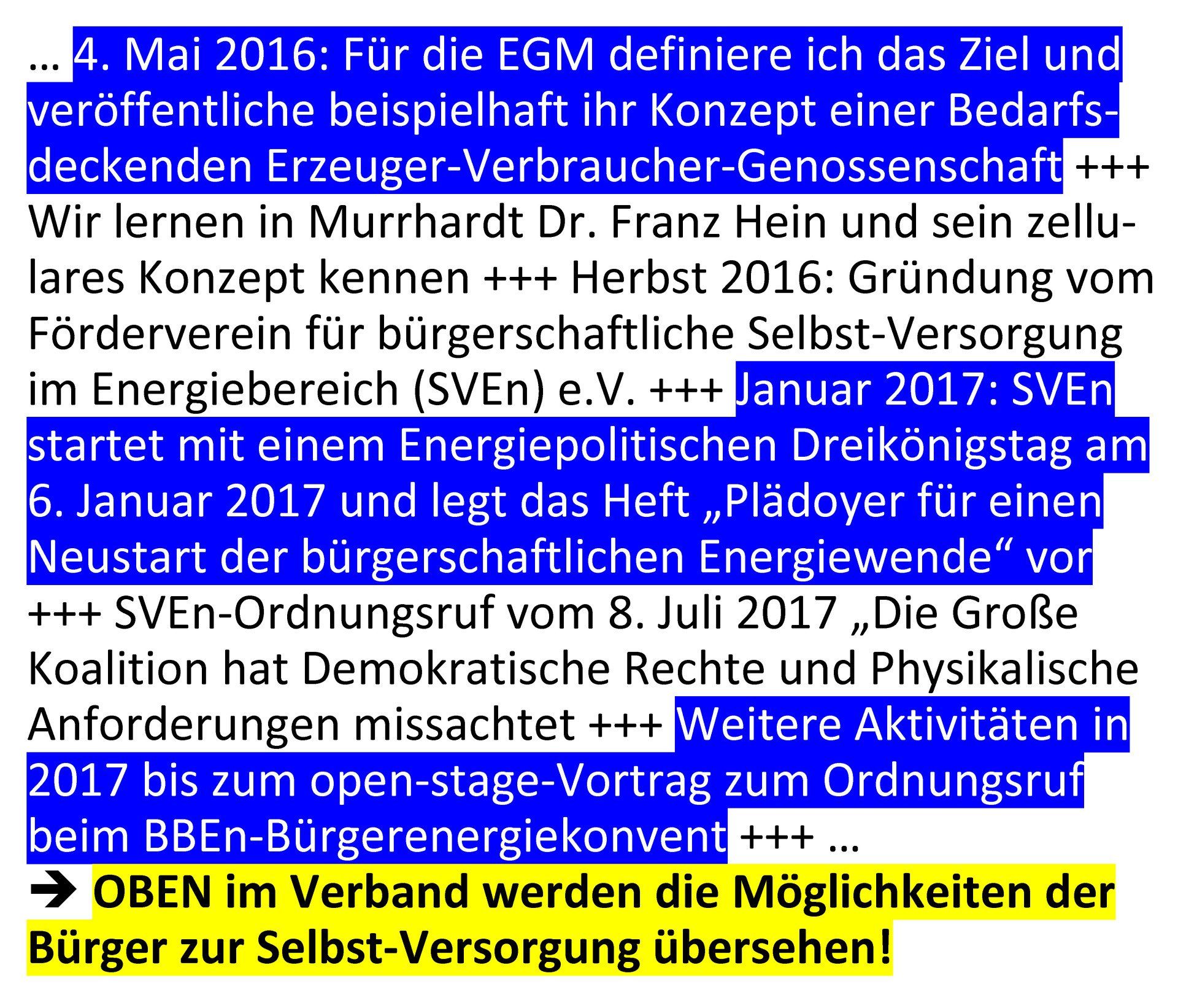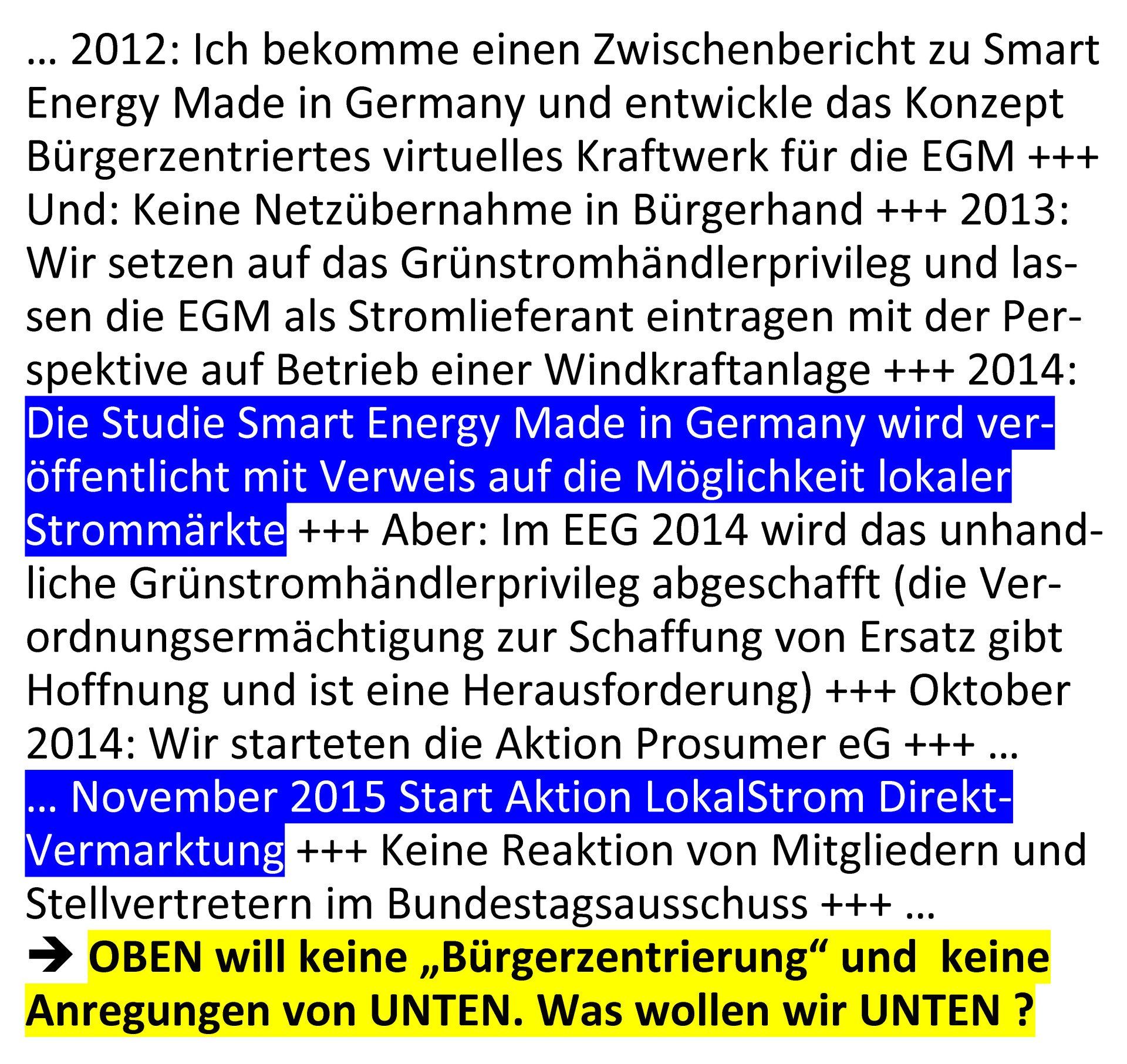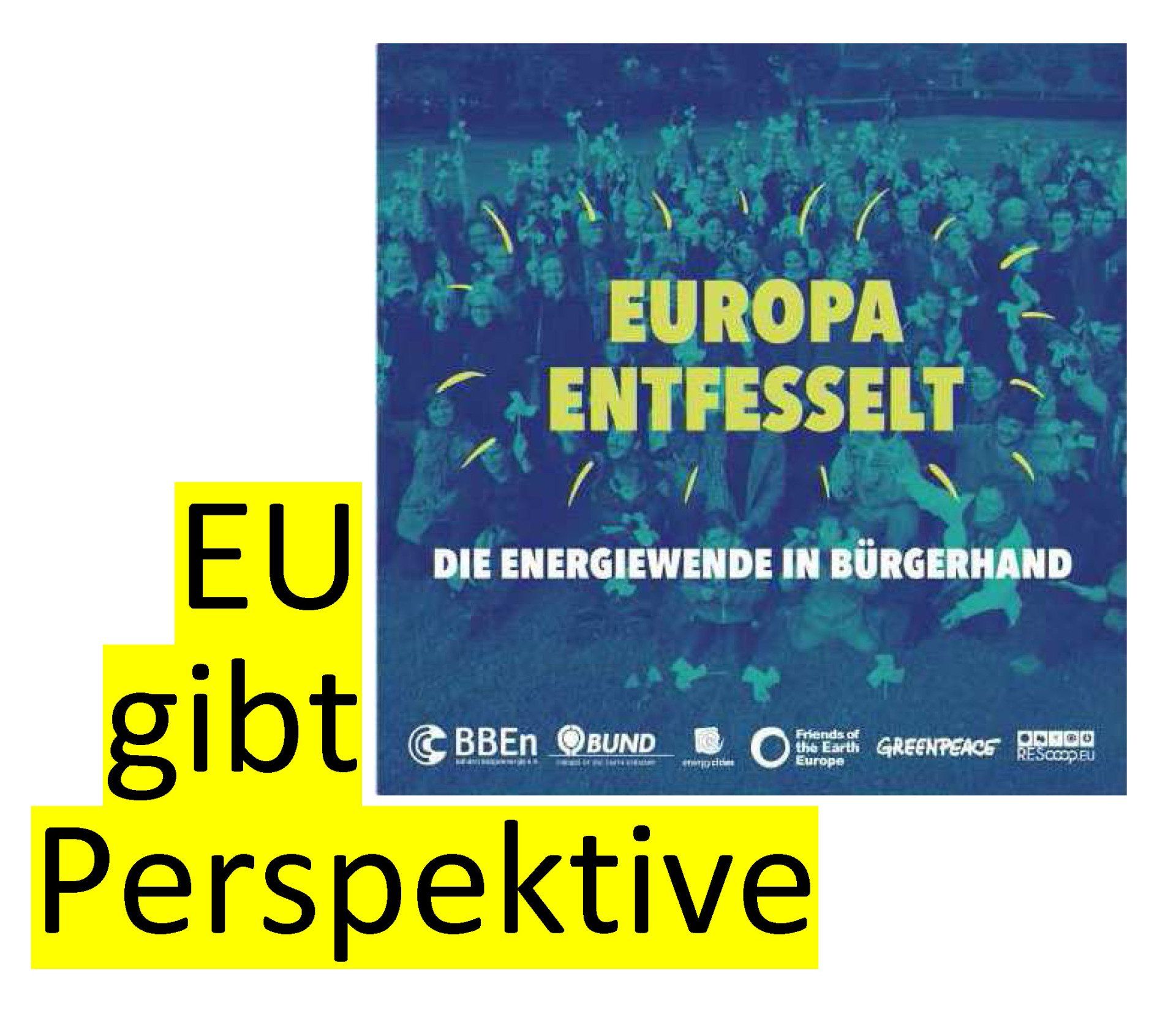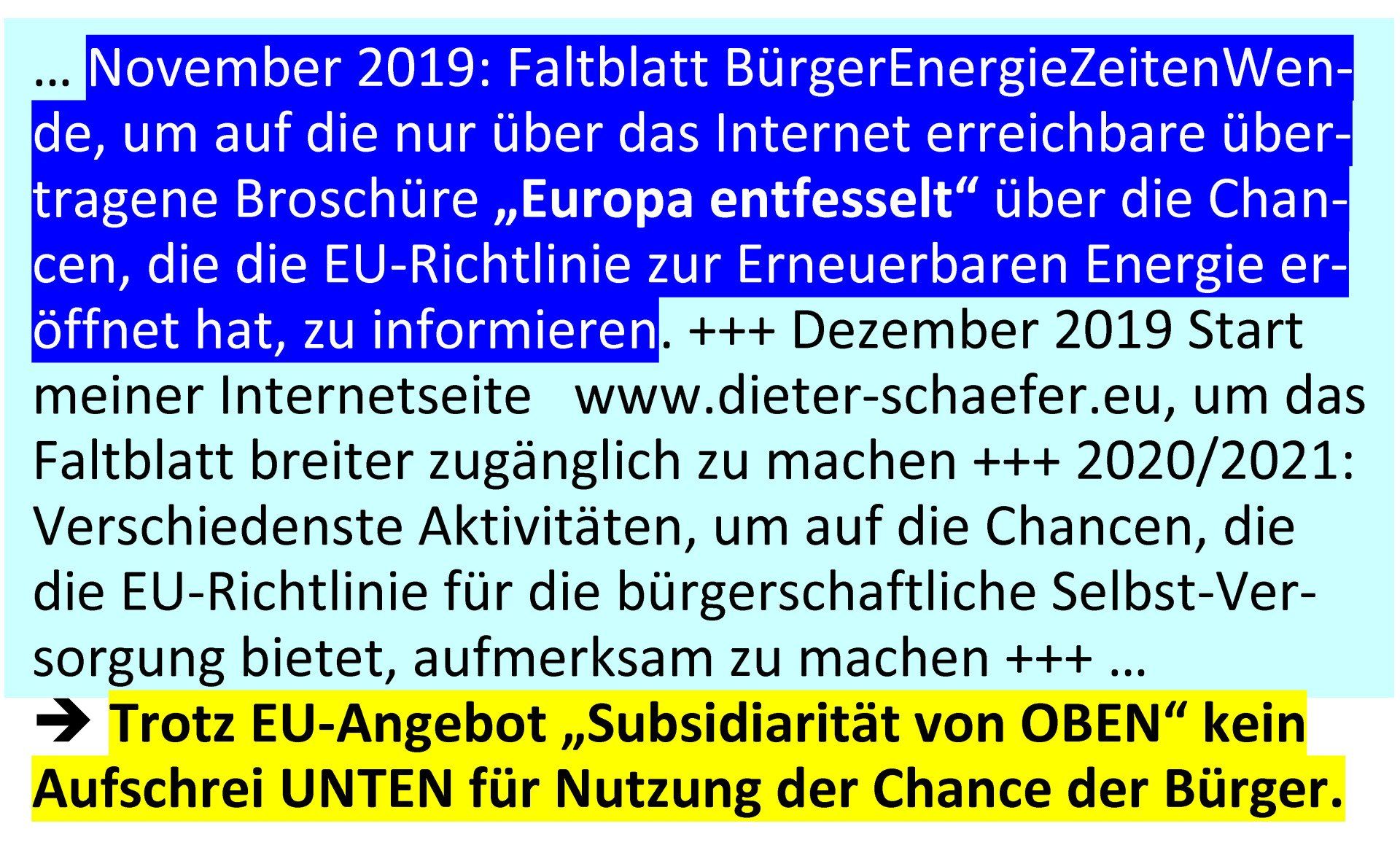 Nach der Klimawoche erhielt ich von Ulrich Jochimsen den Link zur Broschüre "Europa entfesselt" und versuchte, die KGs der Gedea, die EGM eG und SVEn e.V. zu mobilisieren. Das war noch vor der Erstellung des Faltblattes (Phase 5).