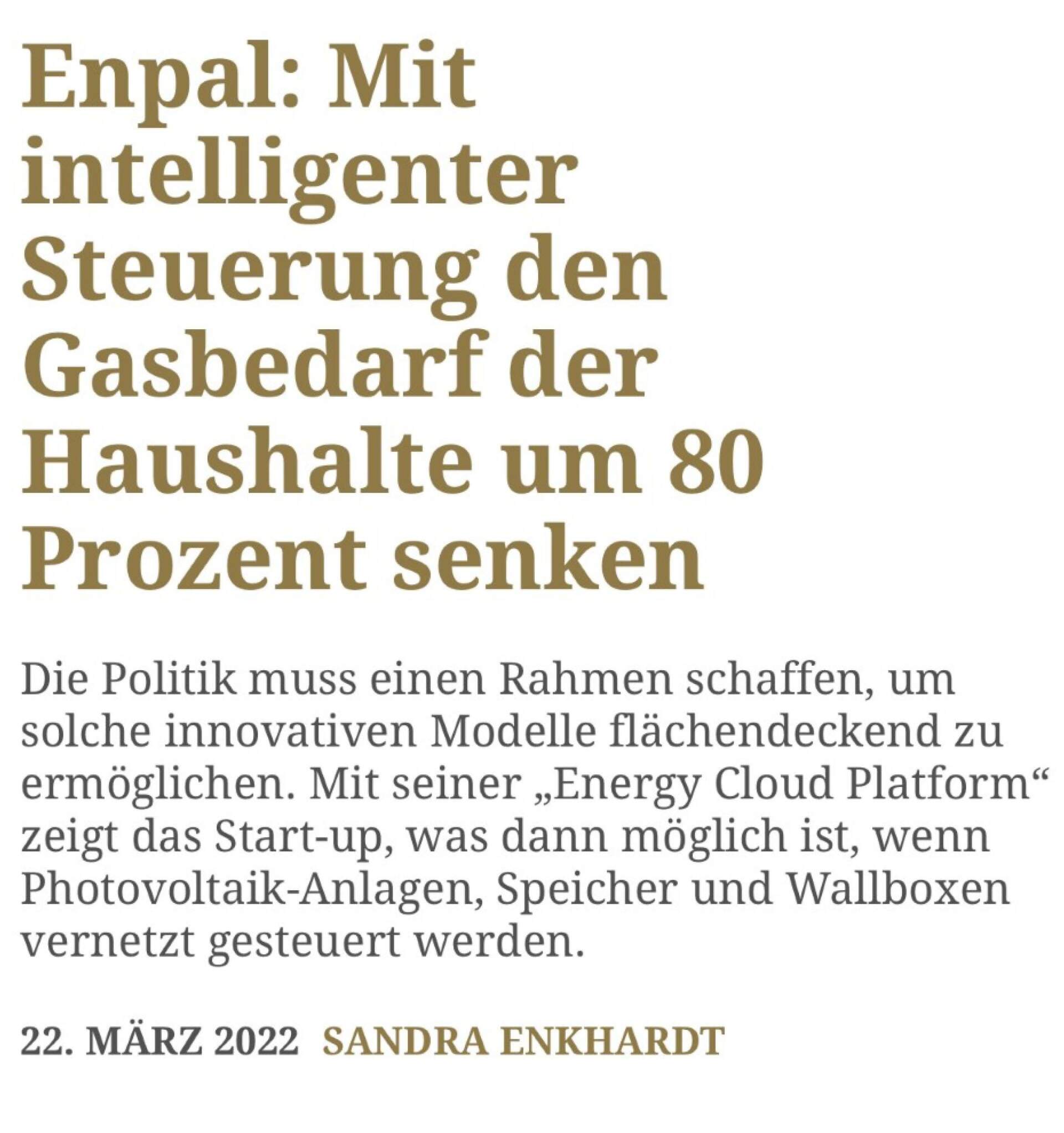 Der Titel schafft Aufmerksamkeit. Es geht um Haushalts-Gasbedarf für die Erzeugung von Spitzenstrom (nicht für Wärme). Es geht um Enpal und seine „Energy Cloud Platform“, die Aufmerksamkeit verdient. Die vernetzten Privat-Haushalte haben mit ihren PV-Anlagen, Speichern u. Wallboxen diese 80 Prozent erreicht.