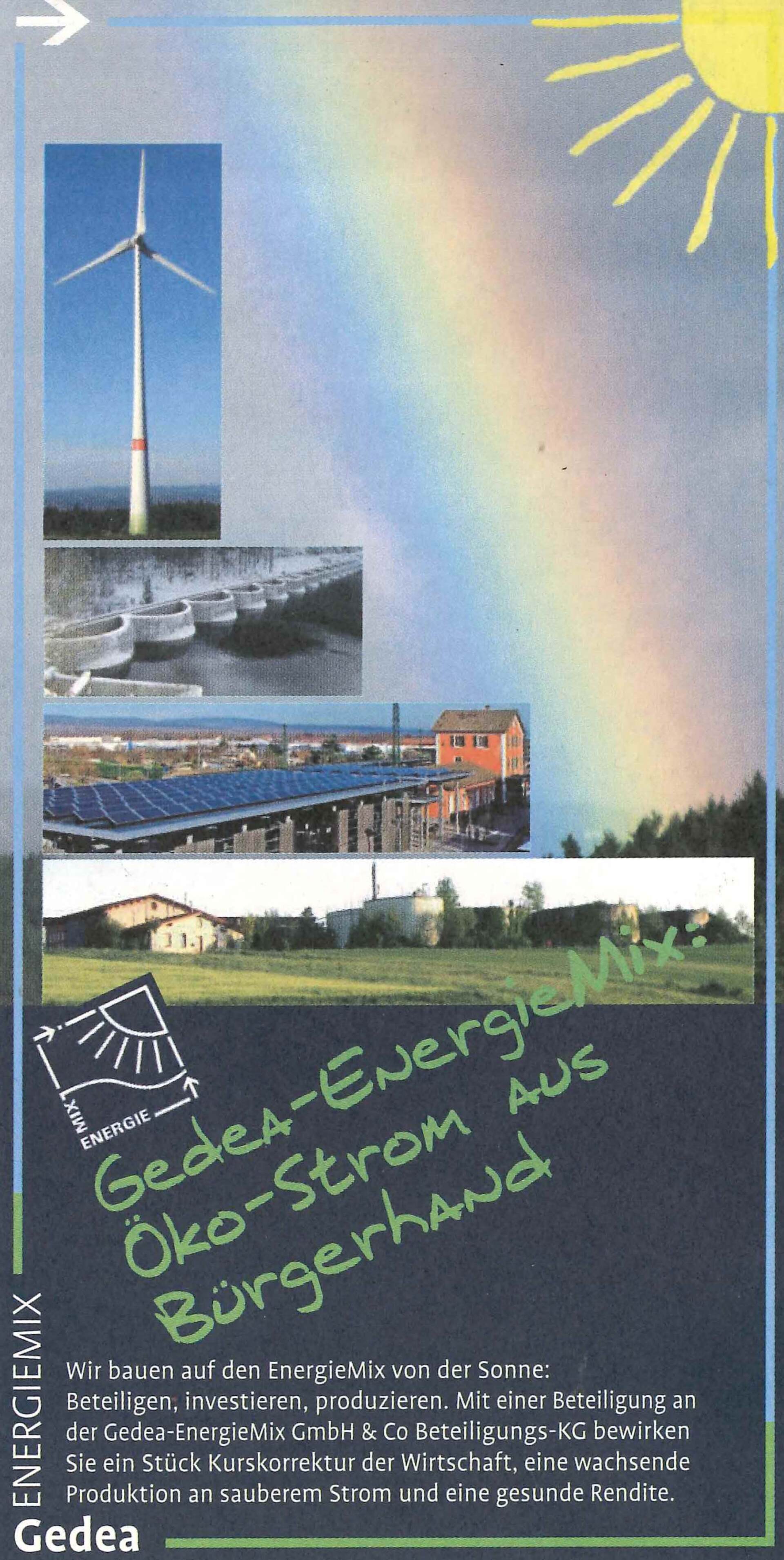 Nachwort von REDinD: Sind die Möglichkeiten nicht enorm, mit diesen Techniken vor Ort, zuhause ganz gezielt angepasste Projekte umzusetzen, die eine Erneuerbare-Energie-Gemeinschaft aktiver Bürger unabhängig macht. Man müsste etwas haben, um rauszugehen und die Menschen mitzureißen! Wenn der Kopf keine Ruhe gibt, gebiert er immer wieder eine neue Idee. Die Frage ist nur, ist sie gut? Gut genug, um die Mauer des fehlenden Interesses und der fehlenden Empathie für lokales Energiegeschehen zu überwinden? Wollen wir konsequenten Klima-Schutz? Wollen wir uns mit Energien von der Sonne möglichst komplett versorgen? Können wir mit der Aktionsidee diejehnigen erreichen, die diese Fragen mit JA beantworten?