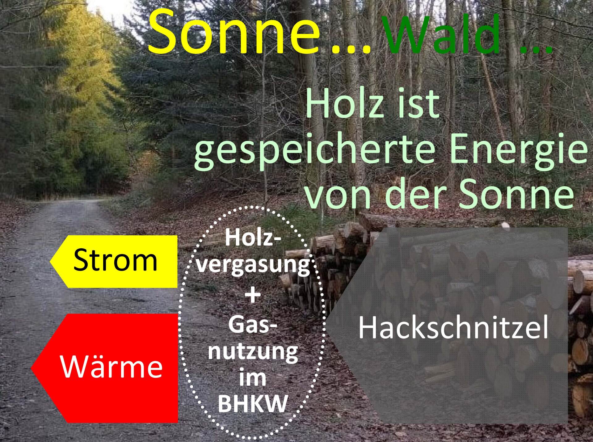 Die Firma Spanner nutzt Holz - die gespeicherte Energie von der Sonne, um ganz effektiv Strom und Wärme zu erzeugen. Das Holz wird vergast und das Gas wird über ein BHKW genutzt. Die Fa. Spanner setzt auf Holz-Kraft. Der Weber Sepp in Schechen (Oberbayern) tut das auch und versorgt sein Umfeld mit Nahwärme.