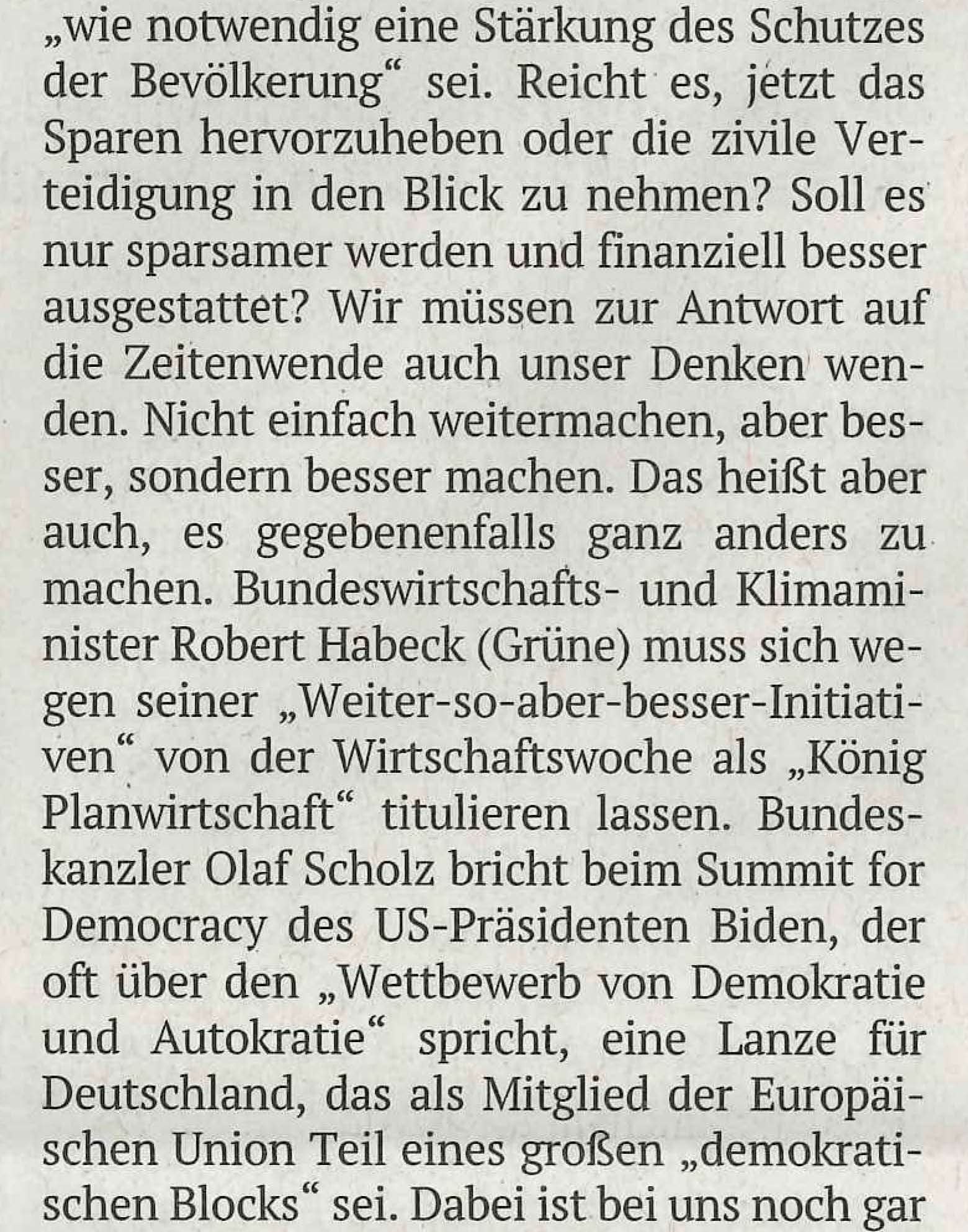 Immer wieder weiterbohren, jetzt aufgrund von Strobls Vorstoß in Sachen zivile Verteidigung. Ein Leserbrief: