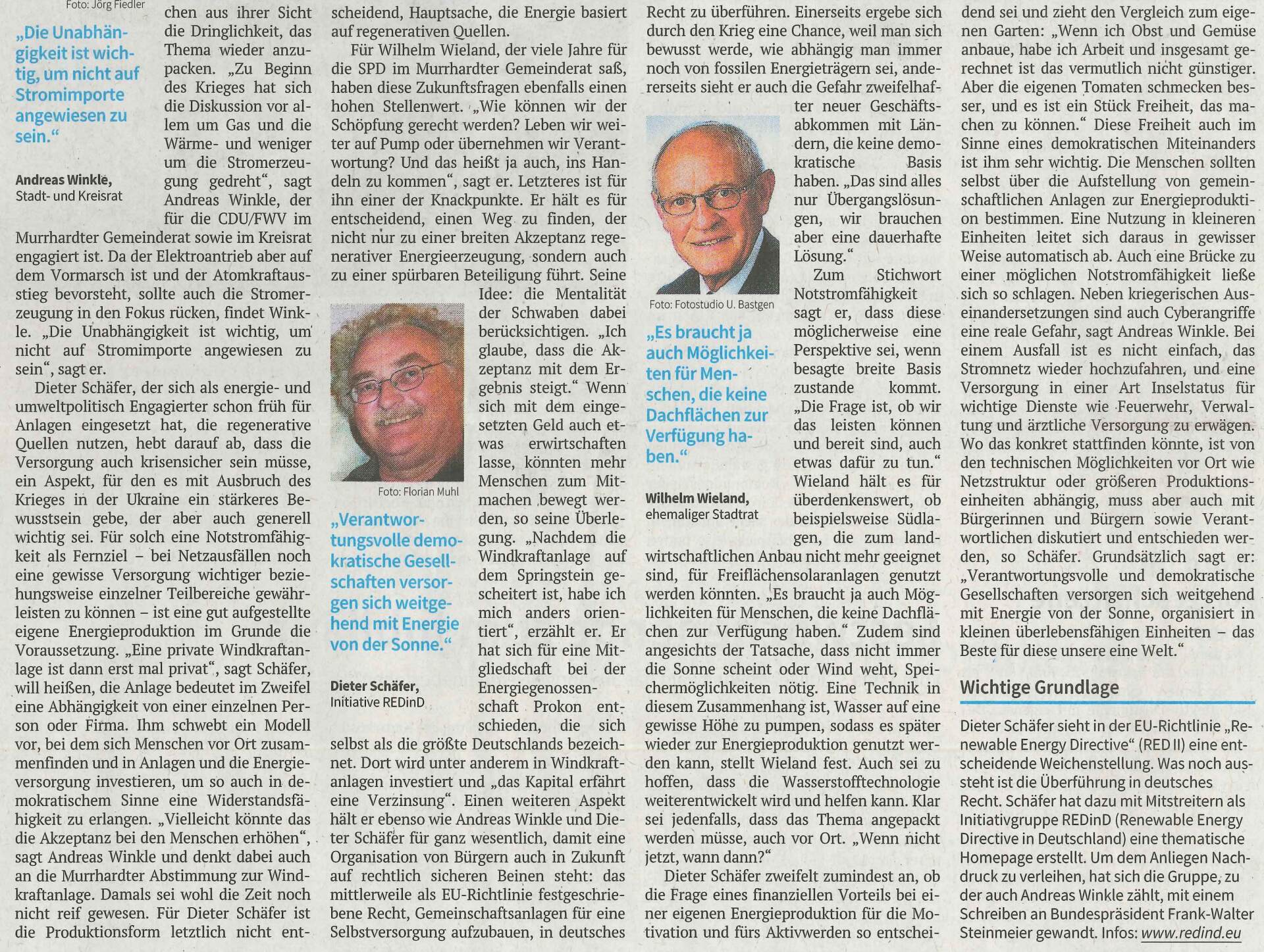Murrhardter Zeitung vom 22. August 2022 - Initiative ist vorgestellt